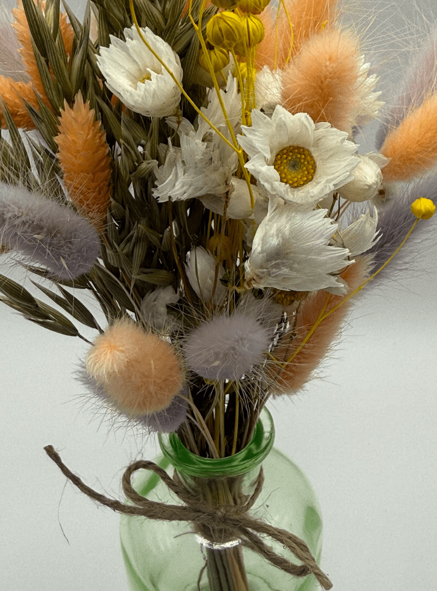Each Colmar Pastel arrangement is lovingly handcrafted using a curated mix of naturally dried and preserved blooms in serene, uplifting tones. Expect to find a beautiful blend of blush-toned strawflowers, lilac statice, creamy white lagurus (bunny tails), and soft grasses — all chosen for their texture, elegance, and long-lasting beauty.